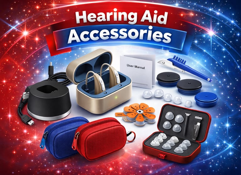 Chargers, cleaning tools, and parts to keep you hearing well.